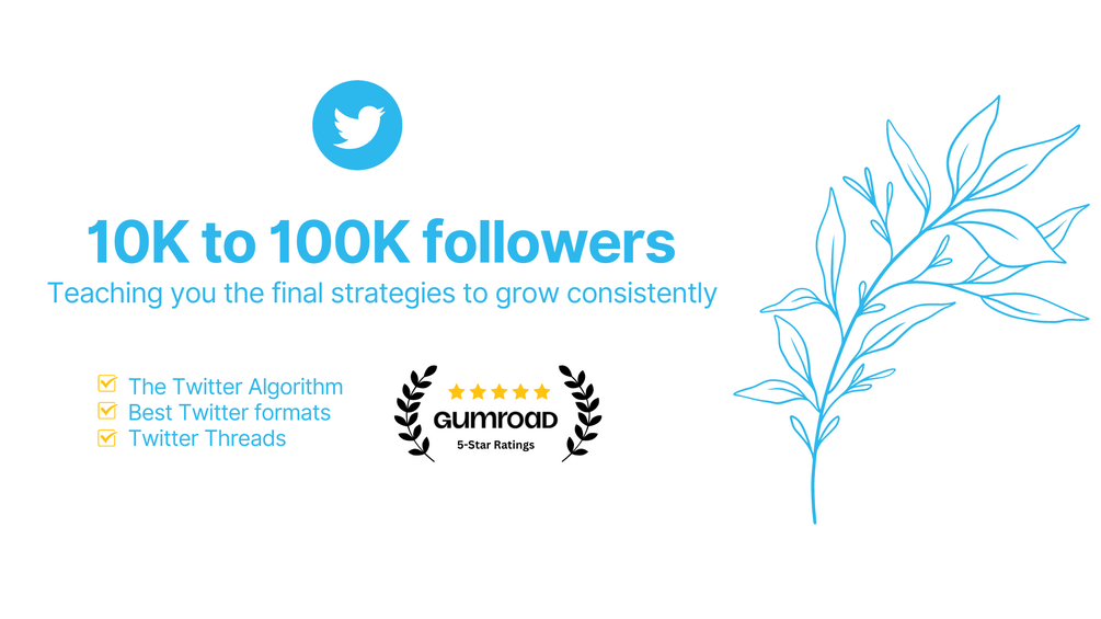A detailed Twitter Growth guide designed to teach you how to grow a Twitter audience from 0 to 100,000 followers using all the tools, insights, strategies and frameworks I've used to grow my audience to the same size in less than 1 year.